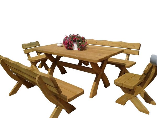 Gartenmöbel, Holzgartenmöbel, Tisch 180 cm +2 x Bank + 2 x Stuhl.